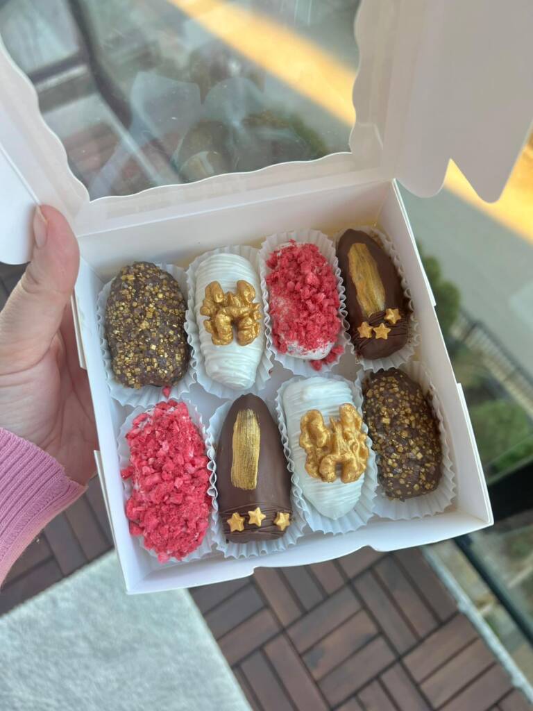 When we moved to Toronto, I was in the process of job hunting. At the same time, I wanted to create something that could generate income while allowing me to stay connected to the field I knew best. That’s when the chocolate-dipped strawberries and colorful chocolate-covered dates I had made for special occasions in Vancouver came back to mind. I wanted to continue but this time, with the intention of building something sustainable and scalable.
