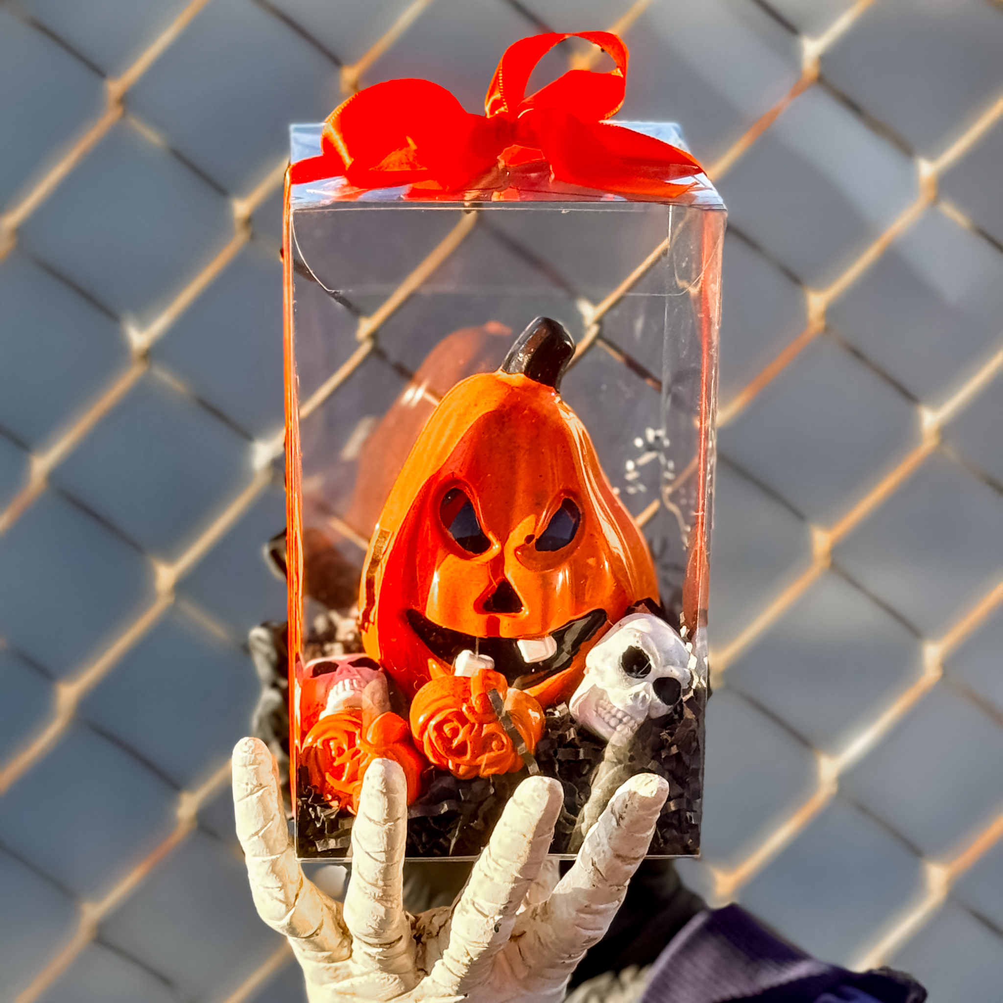 A showpiece milk chocolate in chocolate art (no filling) + 4 Dubai milk chocolate bonbons with pistachio kunafa filling